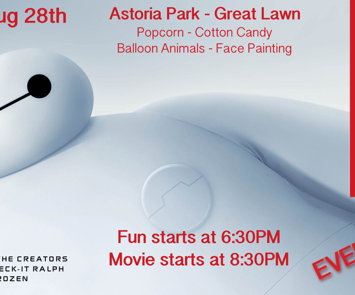 Uncategorized 28 Aug 2015 Outdoor Movie – Astoria Park Come Watch Big Hero 6 Friday August 28th Astoria Park - Great Lawn Popcorn - Cotton Candy- Balloon Animals -… Techguru