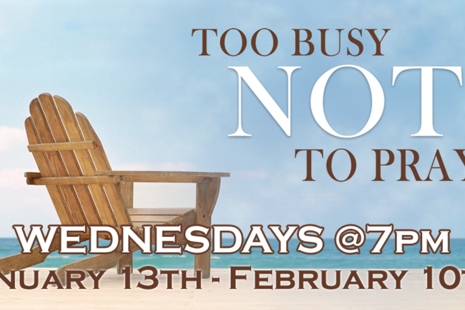 Nightly prayer time will include prayer for our Nation, Community and The Church.